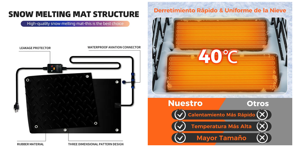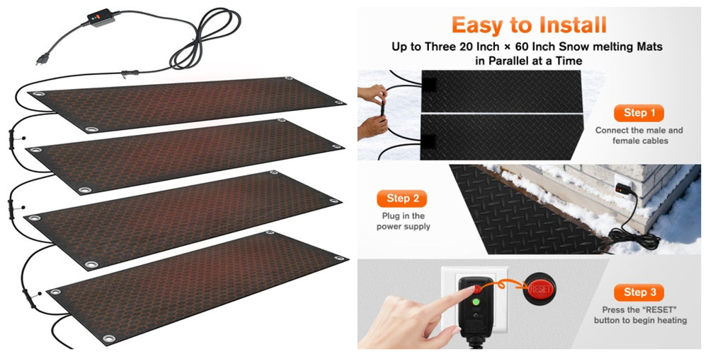 and it will automatically thaw them out. The mat can melt snow and ice up to 5 cm thickness within one hour. You can keep any